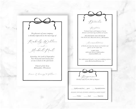 Black bow studio specialises in printable diy editable wedding and event invitations and stationery ready for instant download. We have thousands of exquisite styles to choose from. Black white bow wedding invitation templates. These wedding invitations make us want to invite friends over for some cold, sweet tea on the porch. Black matte and latte papers layered together to create.