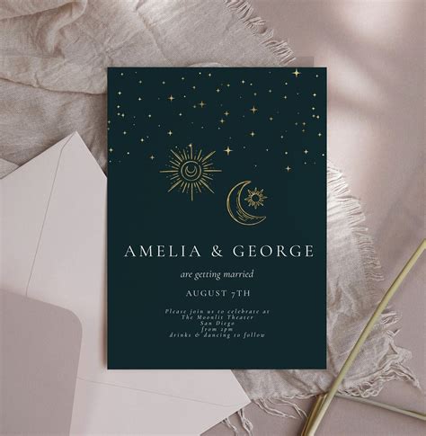 Other designs you may like. * you will have the option to fully customize the envelope, background and most card text. Purchase this sample to experience the quality of our samples. From $1 each | basic invite. Moon engagement rings, backdrops, moon wedding invitations, decorations, moon themed wedding cake toppers, art prints, favors, jewelry, and much more.