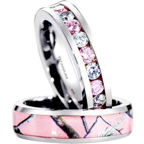 Stunning is an understatement for the realtree ap pink camo bridal set. This beautiful diamond and pink sapphire engagement ring is an exquisite symbol of your enduring love. 3 piece his & her pink camo wedding ring set stainless steel and titanium engagement rings ad by kingswayjewelry ad from shop kingswayjewelry kingswayjewelry from shop kingswayjewelry. Add to favorites previous page..